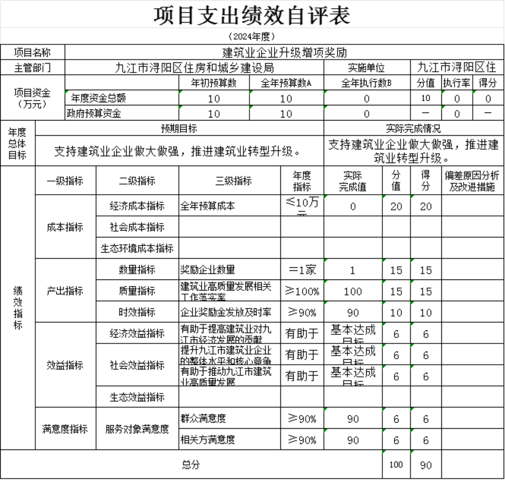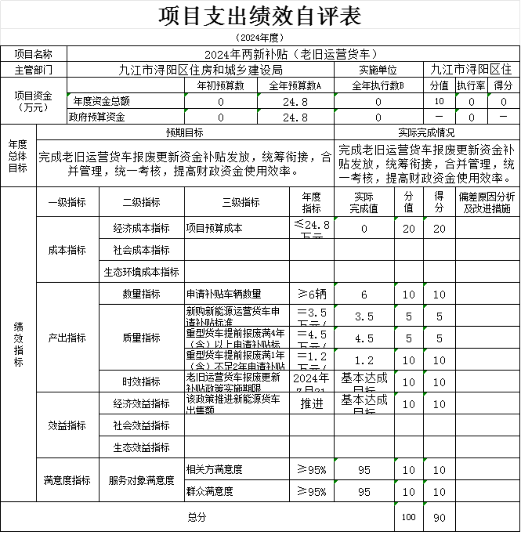3.时效指标。本项满分10分,得分10,及时完成补贴发放目标。