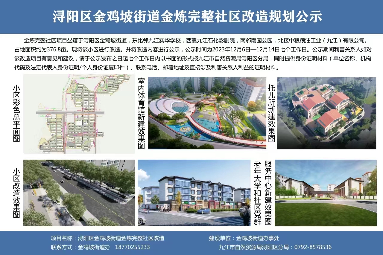 浔阳区金鸡坡街道金炼完整社区改造规划公示