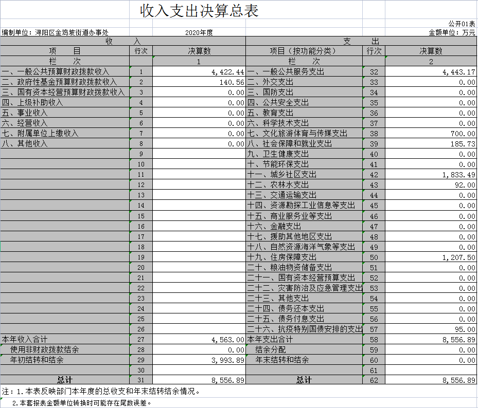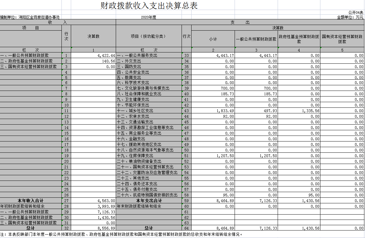 浔阳区金鸡坡街道2020年部门决算