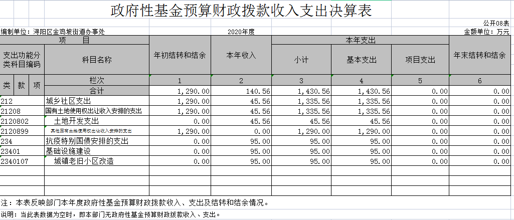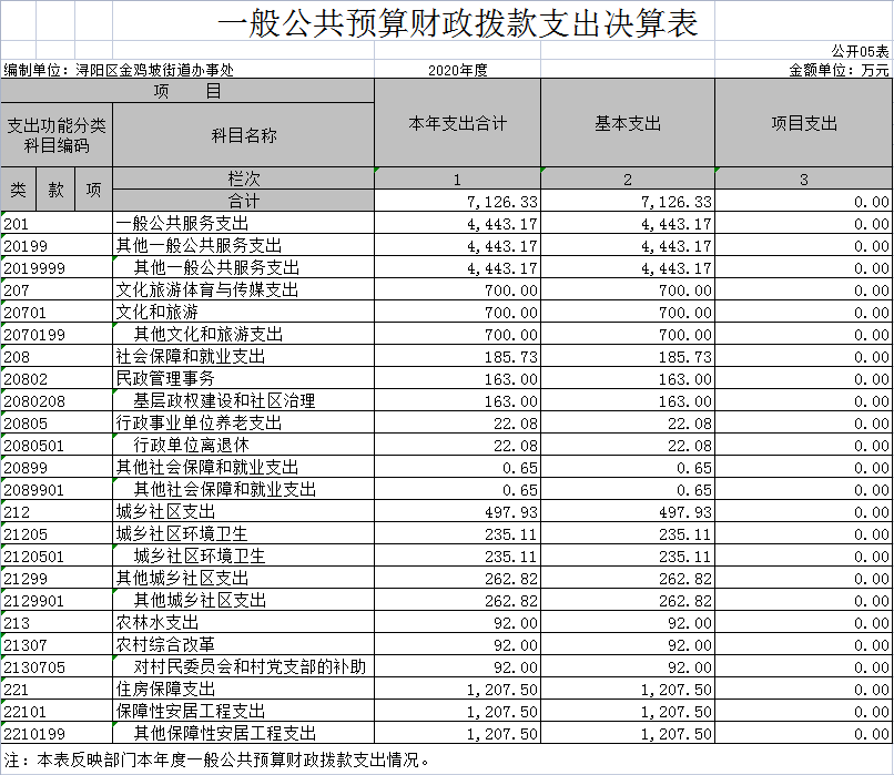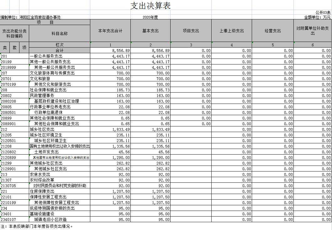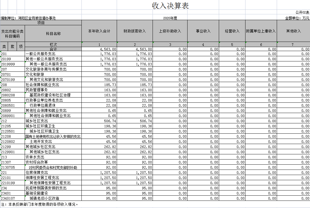 第二部分 金鸡坡街道2020年部门决算表