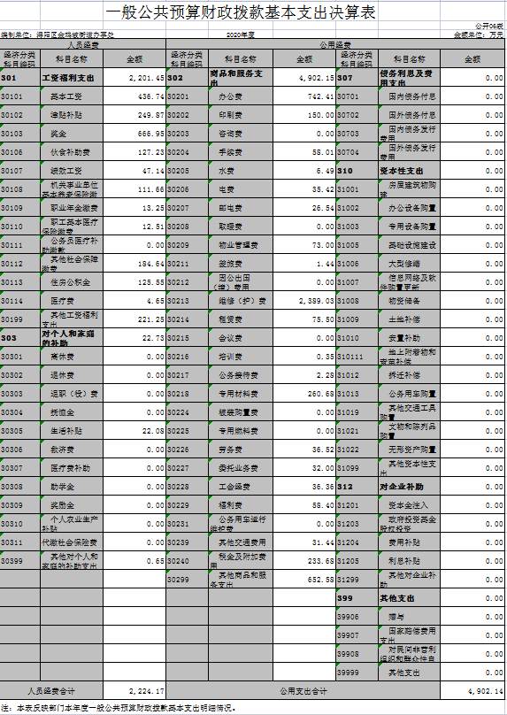 第二部分 2020年部门决算表