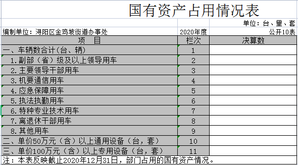 十、国有资产占用情况表