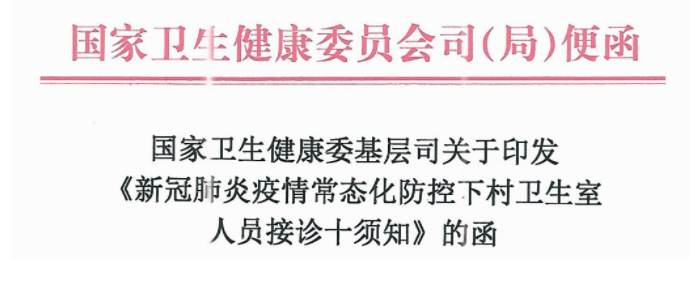 《关于印发<新冠肺炎疫情常态化防控下村卫生室人员接诊十须知>的函》