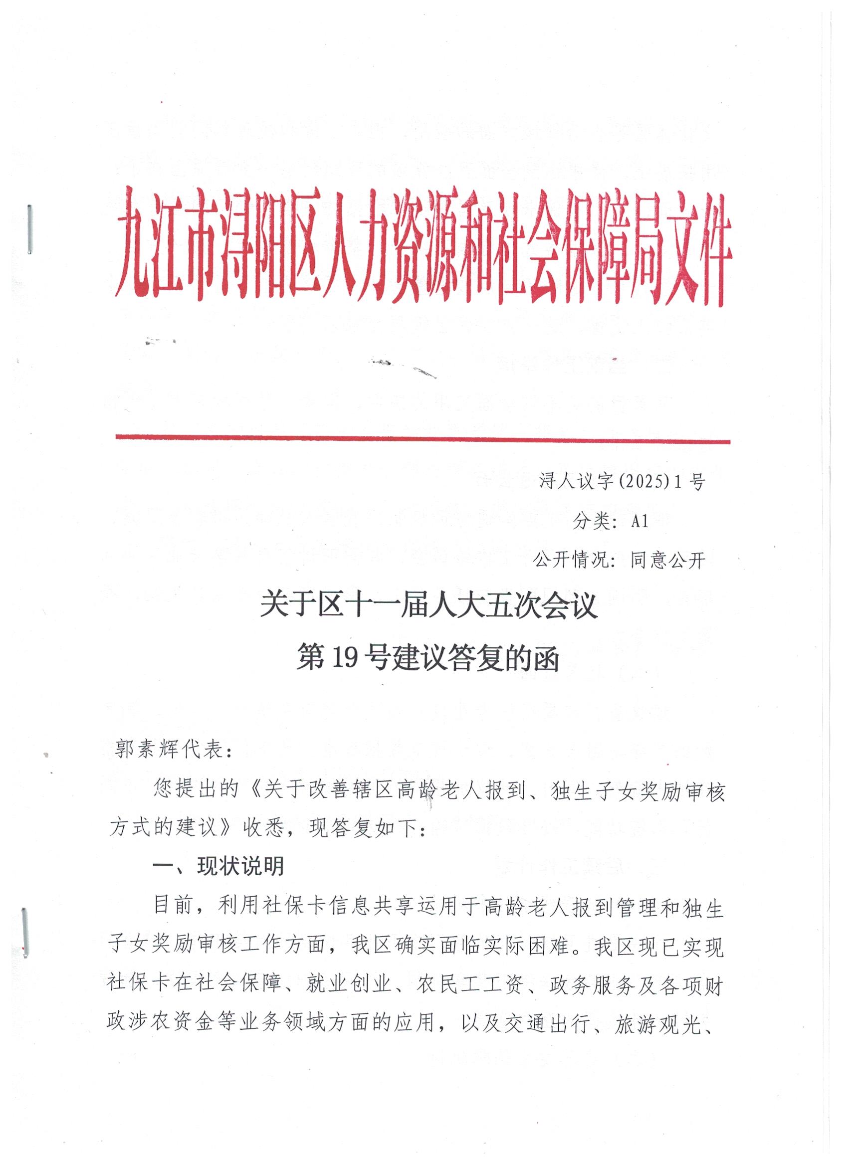关于区十一届人大五次会议第19号建议答复的函