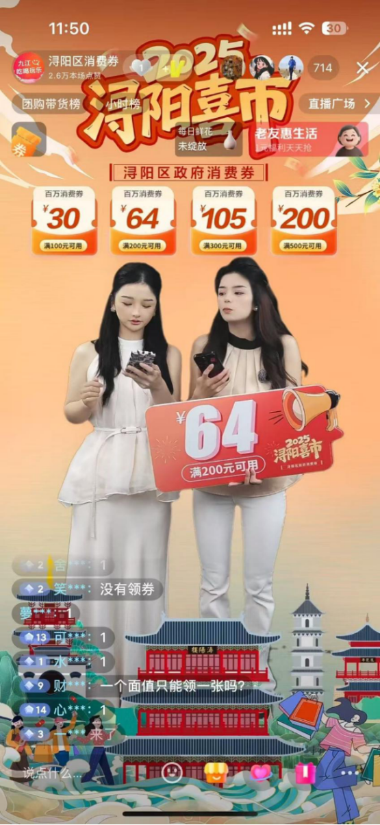 2.进入“浔阳区消费券”官方直播间,按主播指引操作;