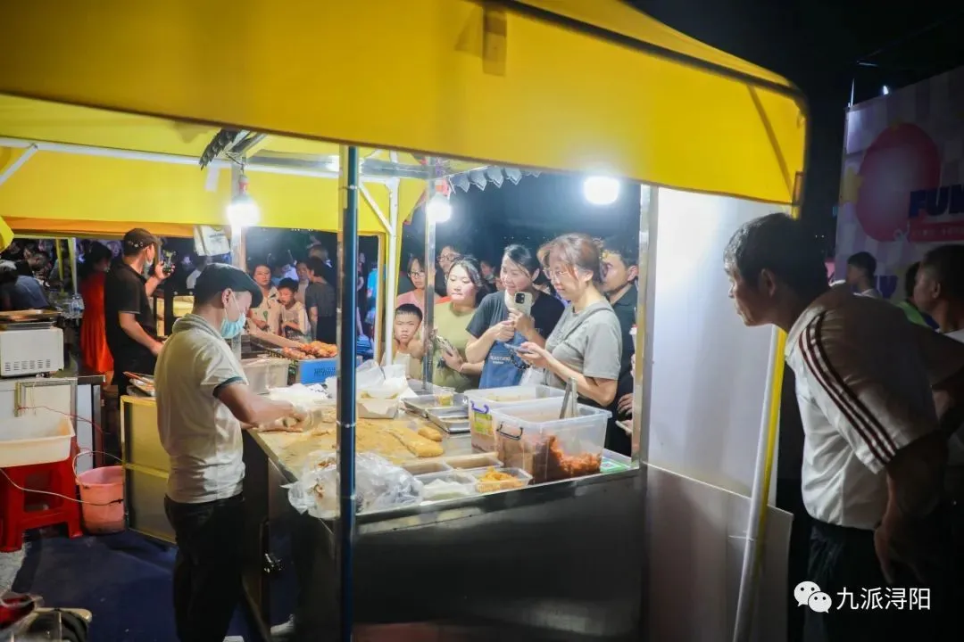 “没想到今天有这么多人,不到一个小时我准备的食材就全部卖完了,我正在补货,人气很高,而且我看每个美食摊位都有这么多人,很喜欢这样的夏日夜晚氛围。”一家经营美食的摊主介绍道。活动的50组“美食派对”包含具有九江特色的夜间小吃和具有夏日风味的文创美食,让市民及游客打开“浔阳胃”。小龙虾快闪店碰撞江景星空露营,让晚风轻抚味蕾,别有一番滋味。