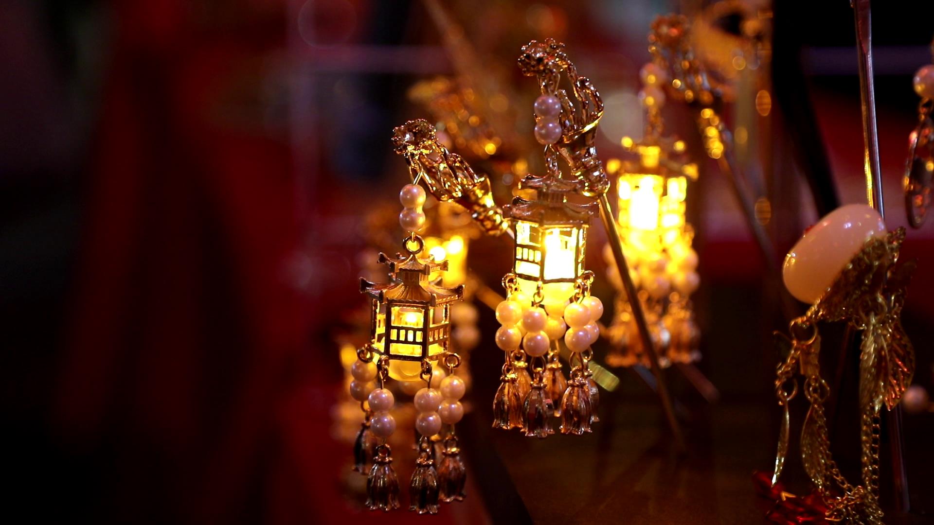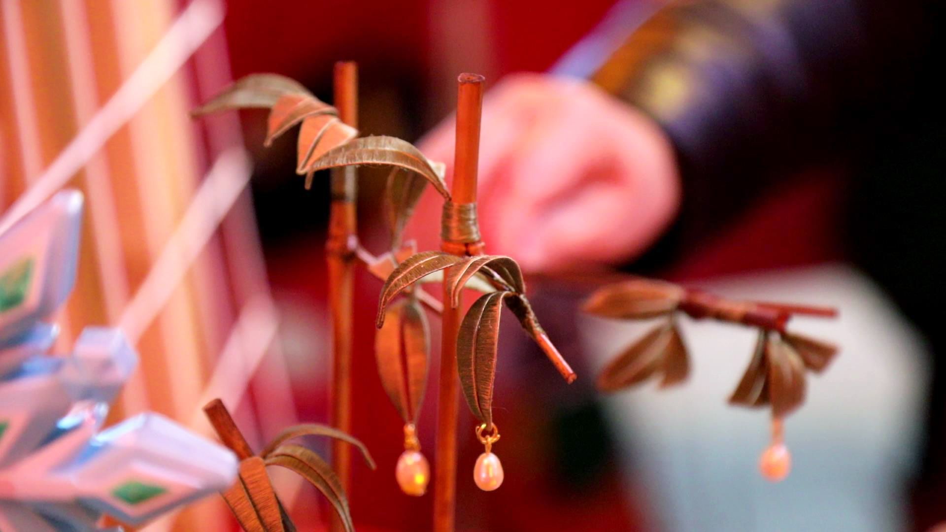 在市集一角,精美的古风饰品吸引了不少游客,人们在沉浸式古风场景中逛市集,感受浓郁的国潮氛围。摊主桂女士自豪地向记者介绍道:“我手上拿的是我自己做的一个古风缠花的头饰,竹子做的,是我自己在山里摘的竹子,自己编的发饰,这也是非遗的手艺,还有面具都是我手绘的。在烟水亭,我感觉不仅有新年的氛围,还有一种古风的感觉,而且我自己比较喜欢汉服,希望能更加融入这个城市。”