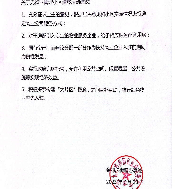 浔阳区开展无物业管理小区清零行动实施方案 | ||||