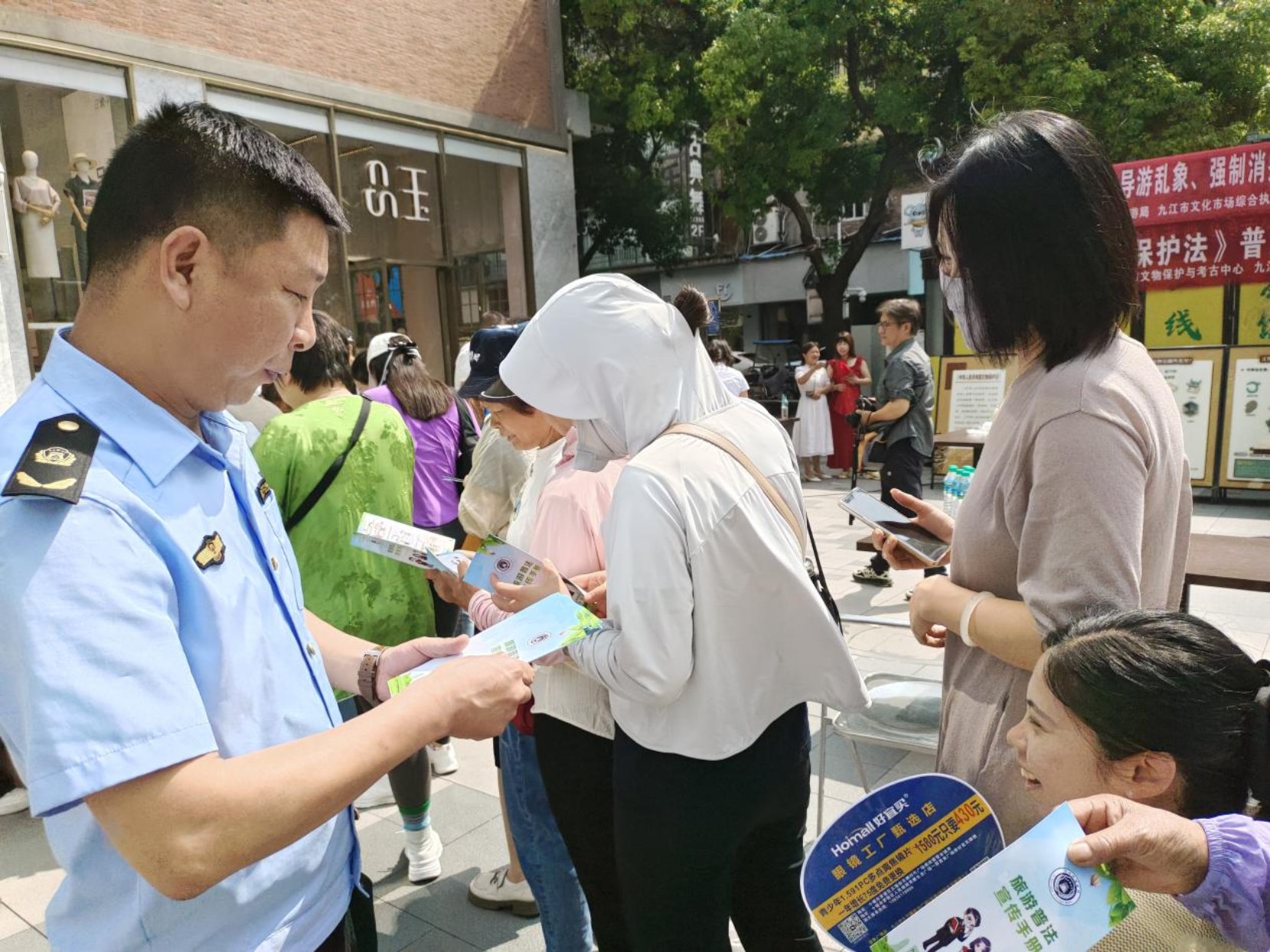 为进一步普及旅游行业法律法规,引导群众依法维护自身权益,5月29日上午,浔阳区文化和旅游局联合九江市文化市场综合执法支队浔阳区大队,在信华浪井广场开展旅游行业导游乱象、强制消费等问题专项整治普法宣传活动。