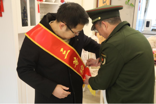 军功喜报送家门,荣光闪耀暖人心。1月12日上午,浔阳区人民武装部联合退役军人事务局组成慰问组,带着党和政府的关怀与祝福,将某部干部葛靖和某支队干部温泉的三等功喜报及慰问金送至其家中,让"一人立功、全家光荣"的荣誉感传遍浔城大街小巷。