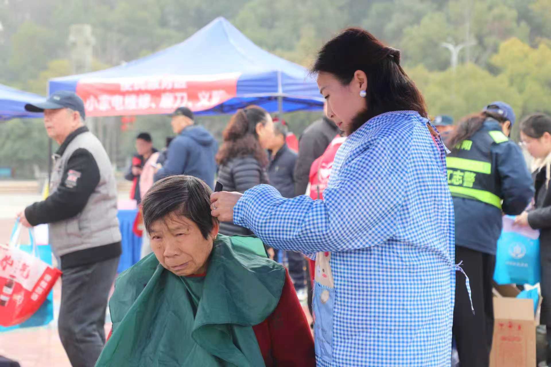 活动现场,浔阳义工联合会组织志愿者开展义剪便民服务,深受老年群众欢迎;浔城志警开展防诈知识宣传,并积极维护现场秩序;家庭教育协会设立咨询台,为家长提供家庭教育指导服务,助力家庭和谐;红色蒲公英社会工作发展中心通过传统文化互动体验、义卖、磨刀等方式,传递温暖与关爱,赢得广泛好评。