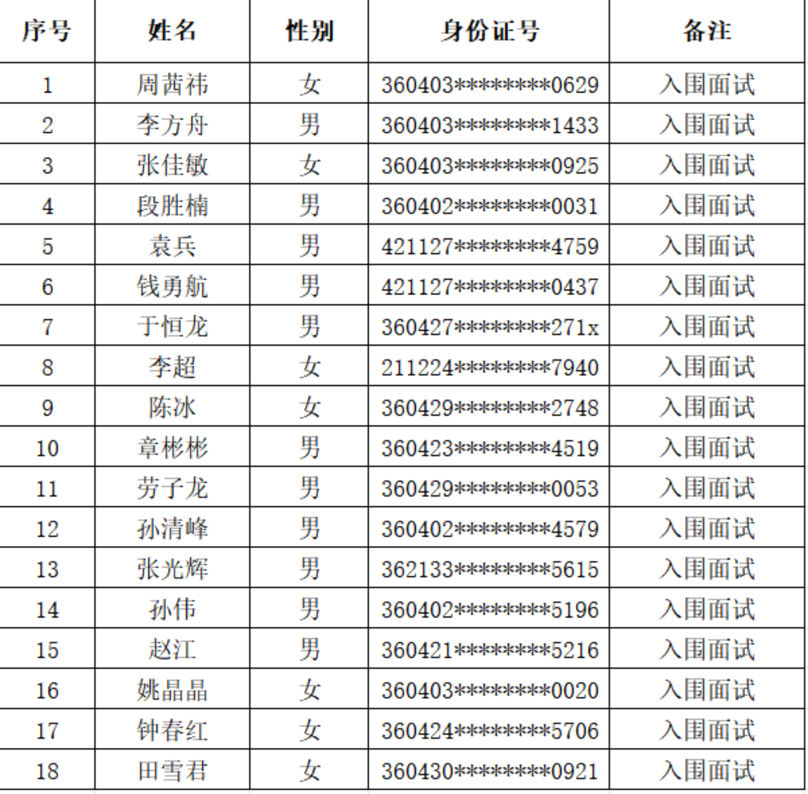 九江市寻金置业有限公司面向社会公开招聘工作人员面试入围人员公示公告