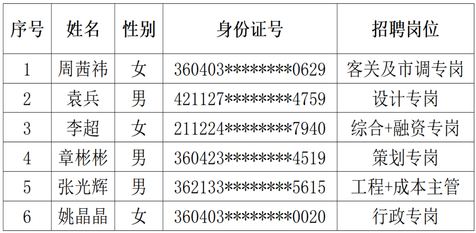 根据《九江市寻金置业有限公司面向社会公开招聘工作人员的公告》,经资格审查、笔试、面试,现将有关事项公告如下: