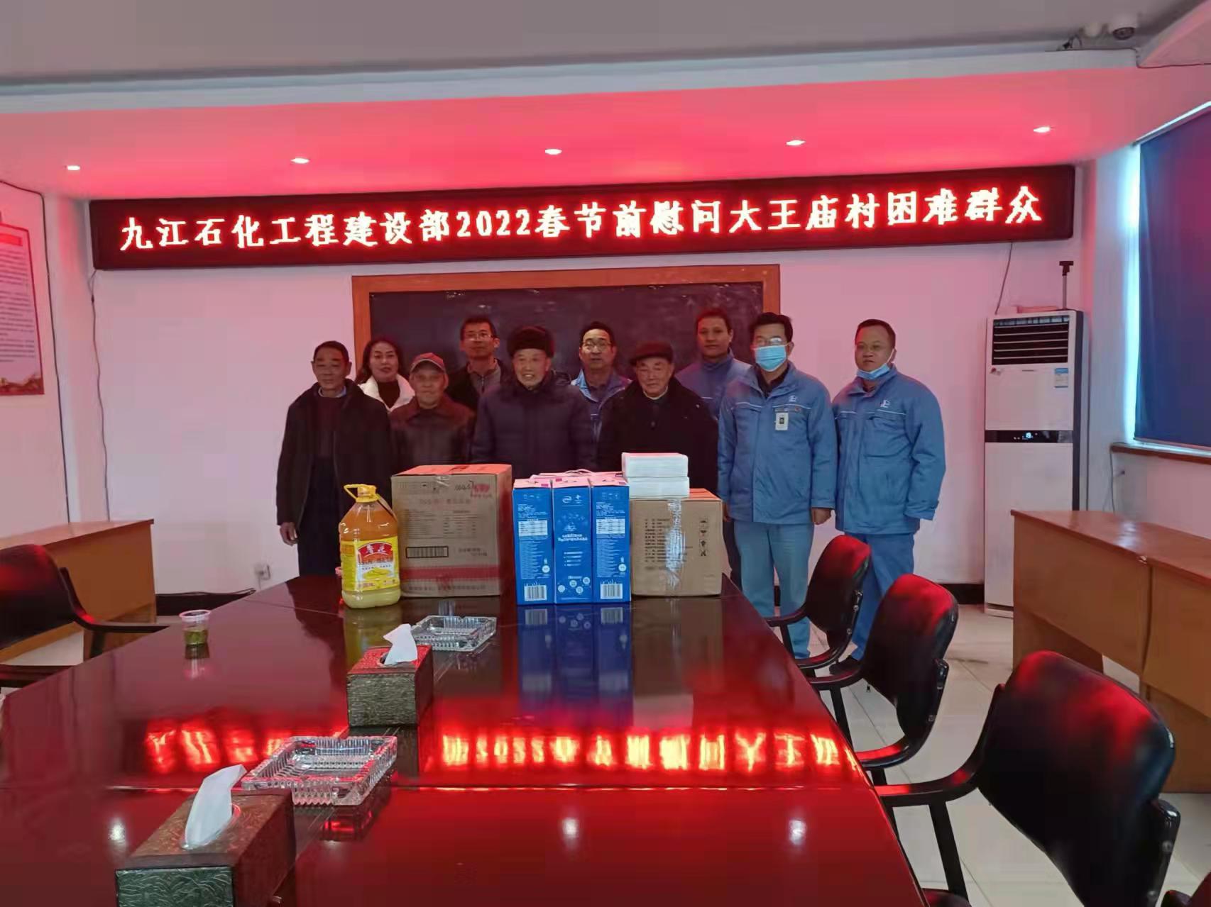 1月10日(腊八节)上午,在2022年春节来临之际,大王庙村企地共建单位——九江石化工程建设部党支部叶华伟书记带领一行人走访慰问大王庙村困难群众和老党员们,带来了企业的关怀和温暖,提前为他们送来了节日的问候和祝福。
