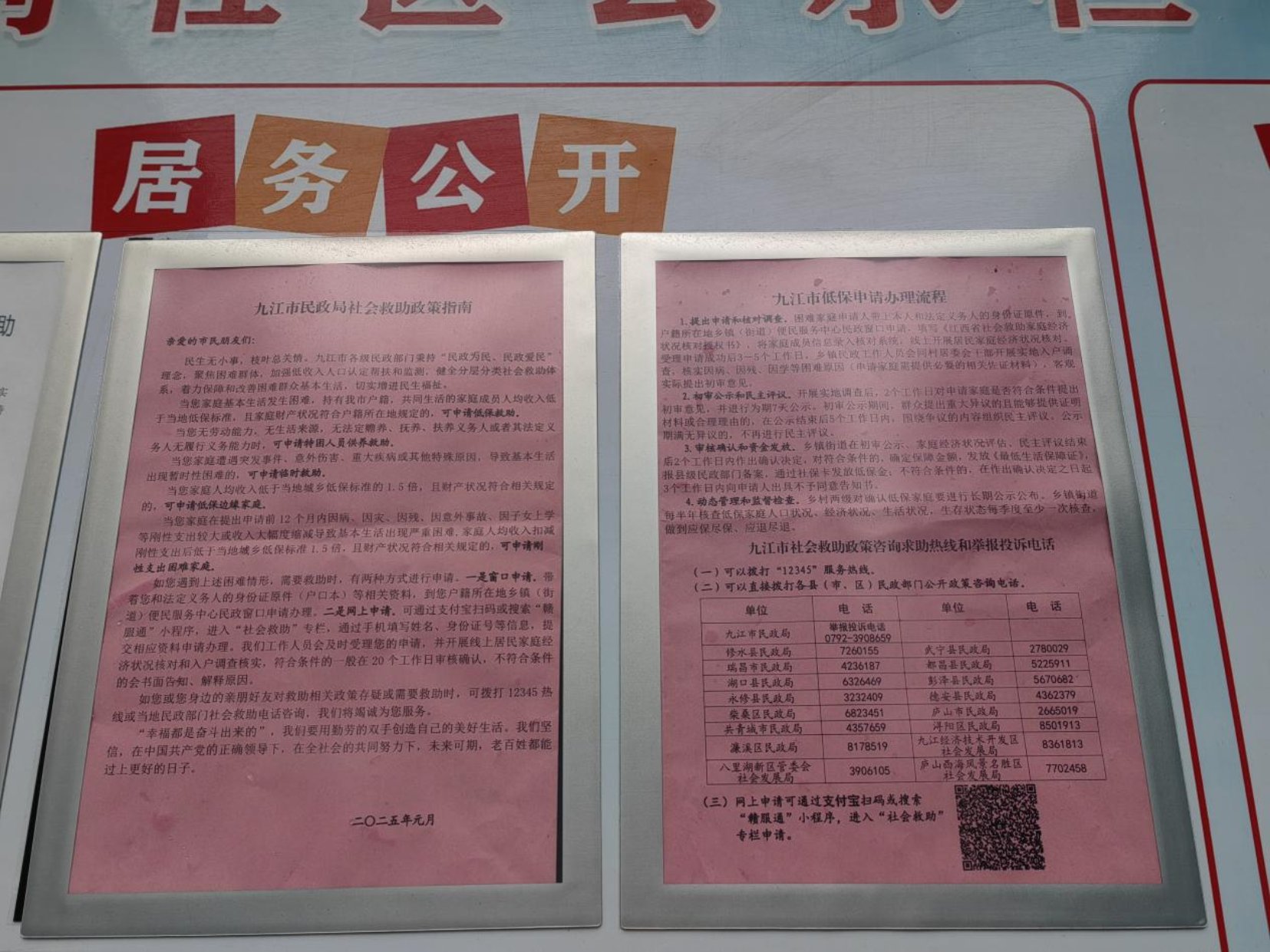 社区工作人员通过在小区广场设立救助政策咨询台、发放宣传页的形式开展了该活动,以“什么人可以得到救助”“如何申请救助”为核心,详细向辖区居民介绍了社会救助的标准、条件、申请、审核确认等关键环节。此外,在社区宣传栏和社区显眼位置,均张贴放置了“社会救助政策指南”和“救助申请码”,确保政策公开、程序公开、标准公开。