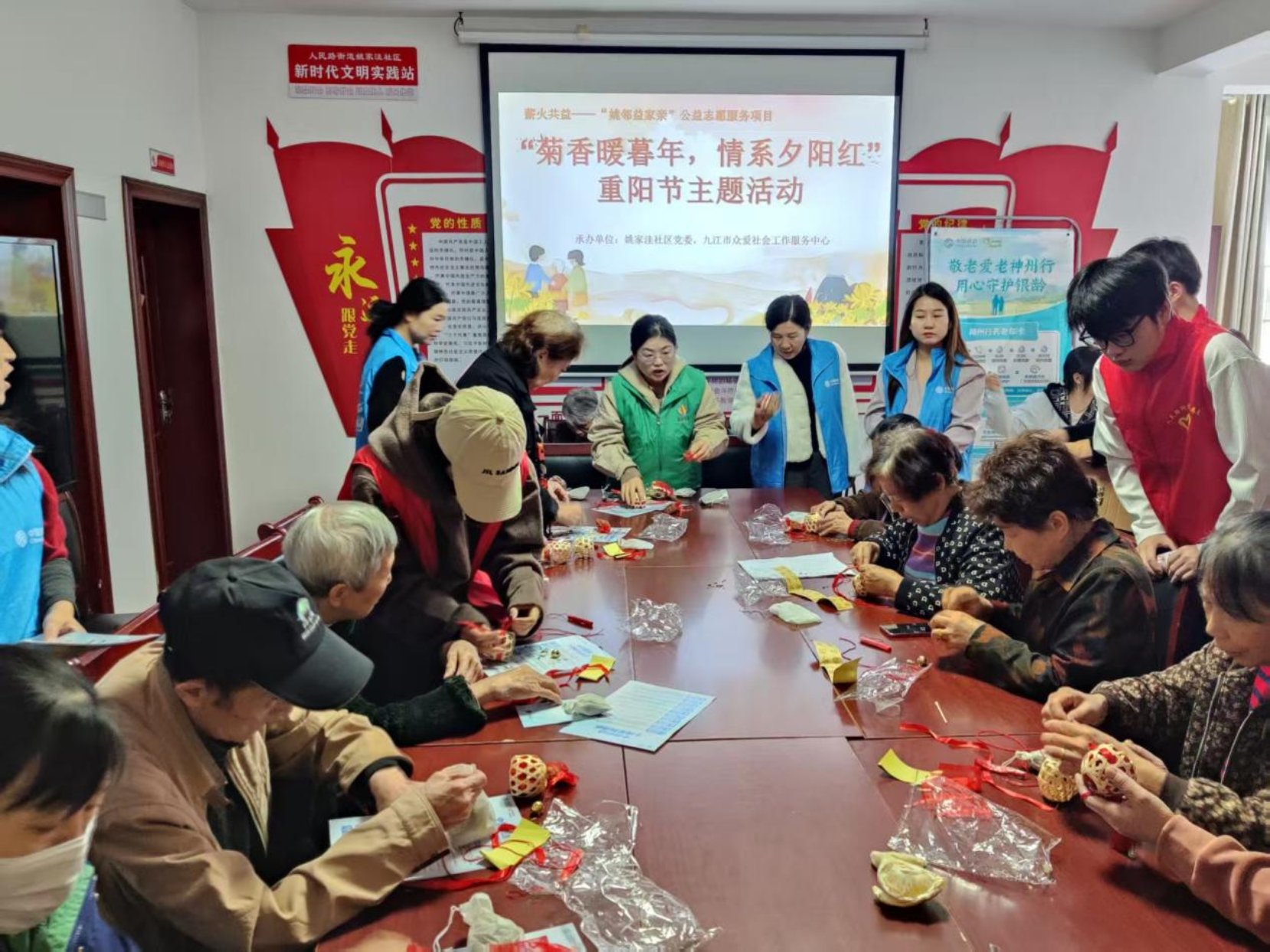 姚家洼社区党委联合九江市众爱社会工作服务中心、江西财经学院信息工程学院,于2025年10月29日组织了一场主题为“菊香暖暮年,情系夕阳红”的重阳节主题活动。活动以薪火共益——“姚邻益家亲”公益志愿服务为宗旨,内容丰富多彩,包括健康体检、反诈宣传、制作茱萸香囊以及探望高龄独居老人,营造了浓厚的节日氛围,传递了温暖与关怀。