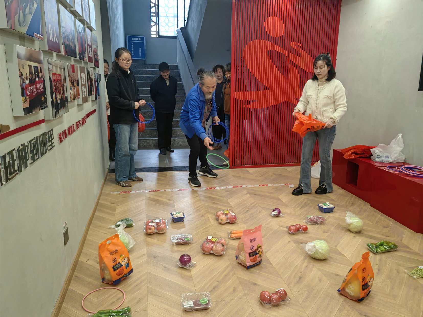 “套中啦!今晚可以加个菜了!”许阿姨成功套中一捆青菜,高兴得合不拢嘴。现场欢呼声、喝彩声、欢笑声此起彼伏。这个简单而富有生活气息的游戏,不仅让老人们活动了筋骨,体验了童年的乐趣,更让他们在收获实实在在的果蔬时,感受到了社区无微不至的关怀。小小的套圈,圈住的不仅是果蔬,更是浓浓的邻里情和社区爱。