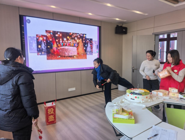 活动现场,趣味互动添欢乐,暖意融融,处处洋溢着欢声笑语。趣味投壶游戏环节,居民们热情高涨,纷纷踊跃参与。大家相互鼓劲加油,每一次投壶成功都引来阵阵喝彩,欢笑声此起彼伏,将现场氛围不断推向高潮。歌唱环节更是精彩纷呈,居民们轮番登台献唱,一首首熟悉的旋律回荡在活动现场,不仅唱出了大家对生活的热爱,更在歌声中拉近了彼此的距离。最后香甜的生日蛋糕被缓缓推上台,寿星们闭眼许下美好心愿,与大家一同分享美味的蛋糕,甜蜜的滋味在舌尖蔓延,温馨的氛围感染着在场的每一个人。