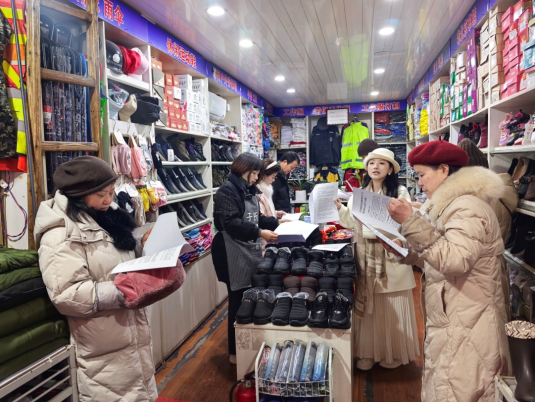 直播支架、补光灯等专业设备一一装备起来,市场里的商铺摇身一变成了临时培训教室,商户们“足不出市场”就能参加培训。社区还邀请了平台直播专业人员,补充讲解平台规则、流量算法、合规运营等专业知识,让商户不仅“学得会”,更能“用得好、走得远”。