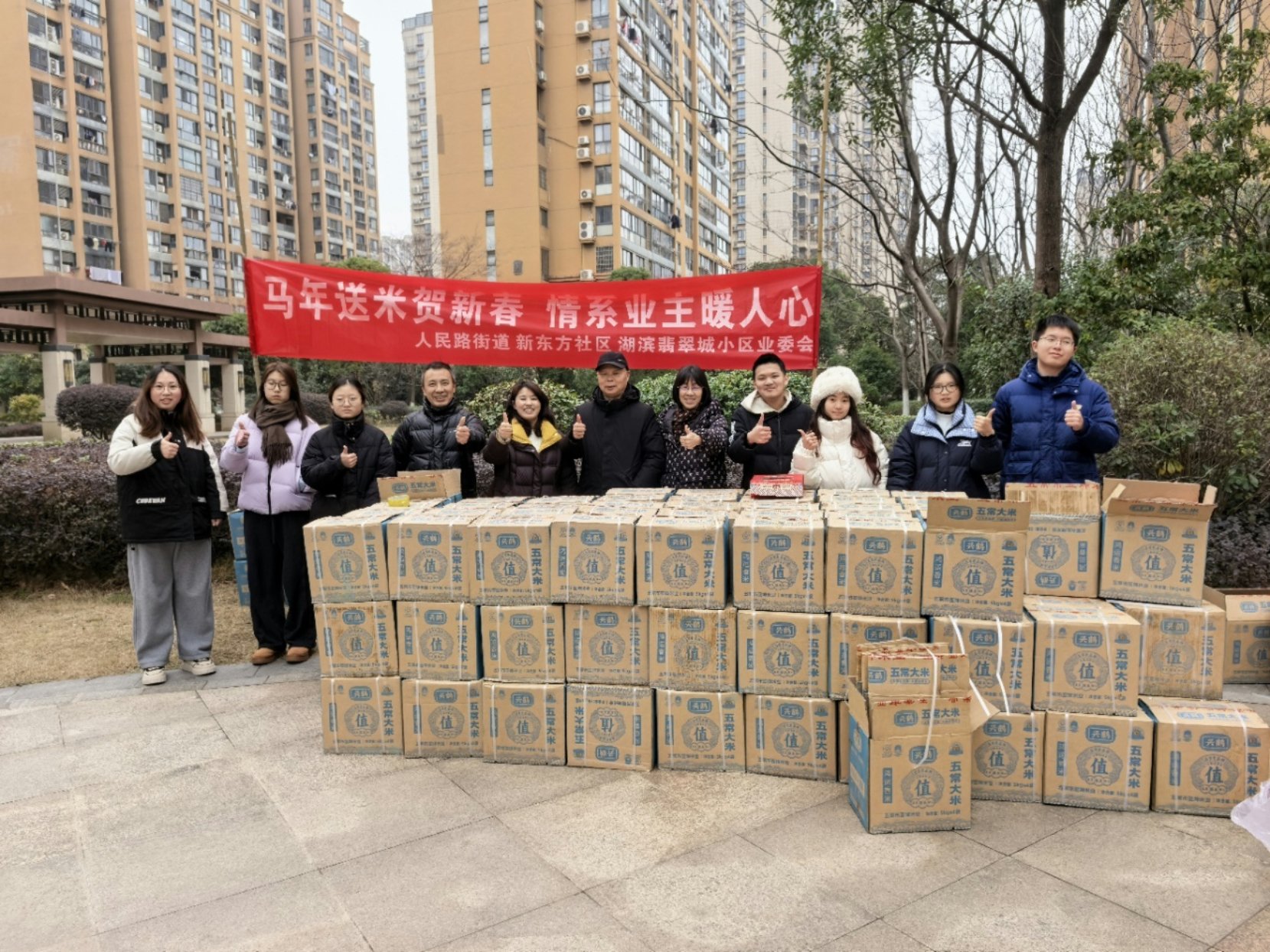 新春将至,年味渐浓,暖意先行。近日,人民路街道新东方社区湖滨翡翠城小区喜气洋洋、暖意融融,由小区业委会牵头举办的“马年送米贺新春 情系业主暖人心”新春送福活动温情启幕。