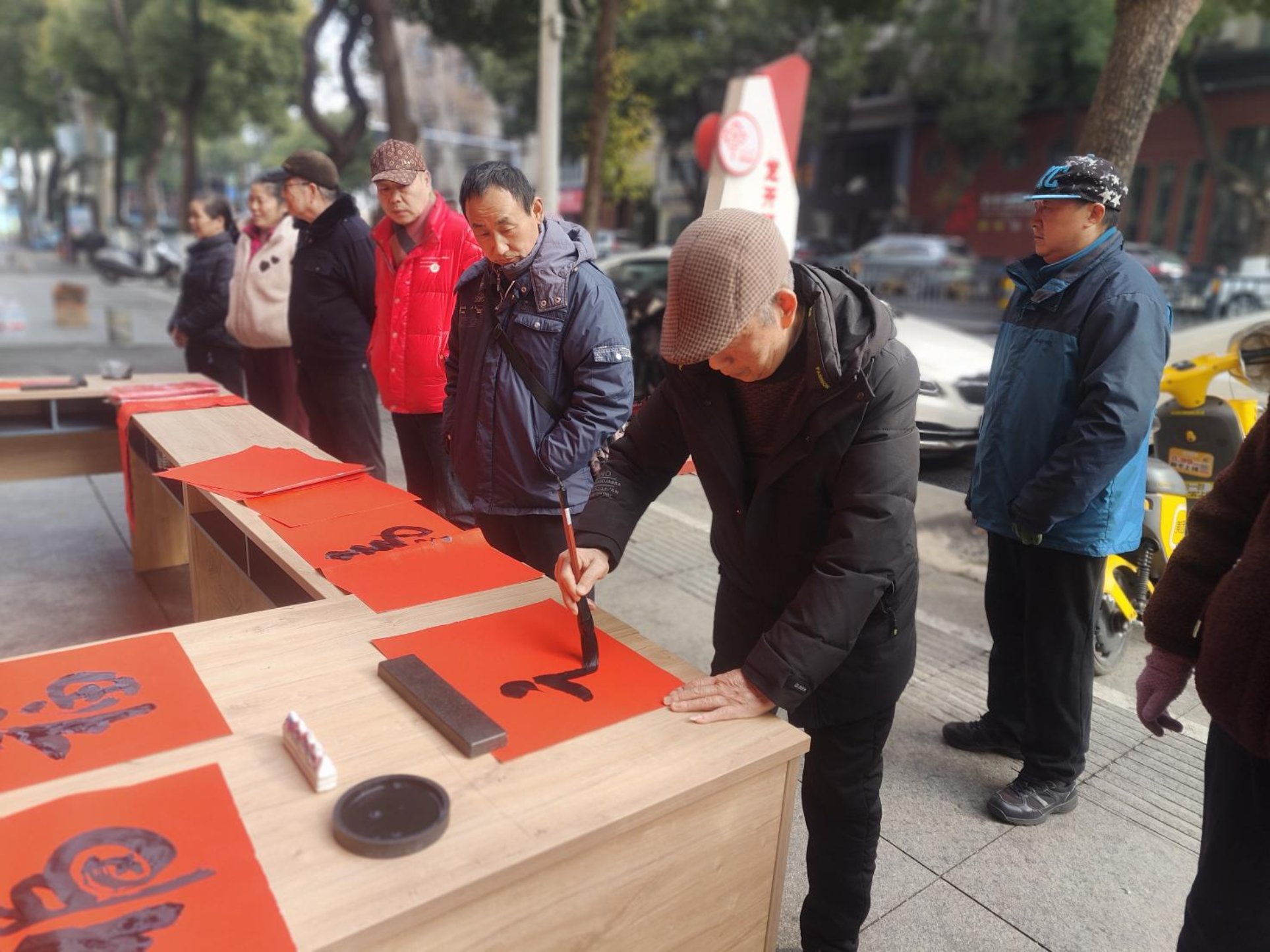 居民们围在桌旁,一边欣赏书法创作,一边挑选心仪的春联,现场欢声笑语不断。“手写的春联更有年味,社区想得太周到了!”拿到春联的居民脸上洋溢着幸福的笑容,纷纷表示,这份来自社区的“文化年货”,不仅传递了新春的祝福,更让大家感受到了传统文化的魅力和社区大家庭的温暖。