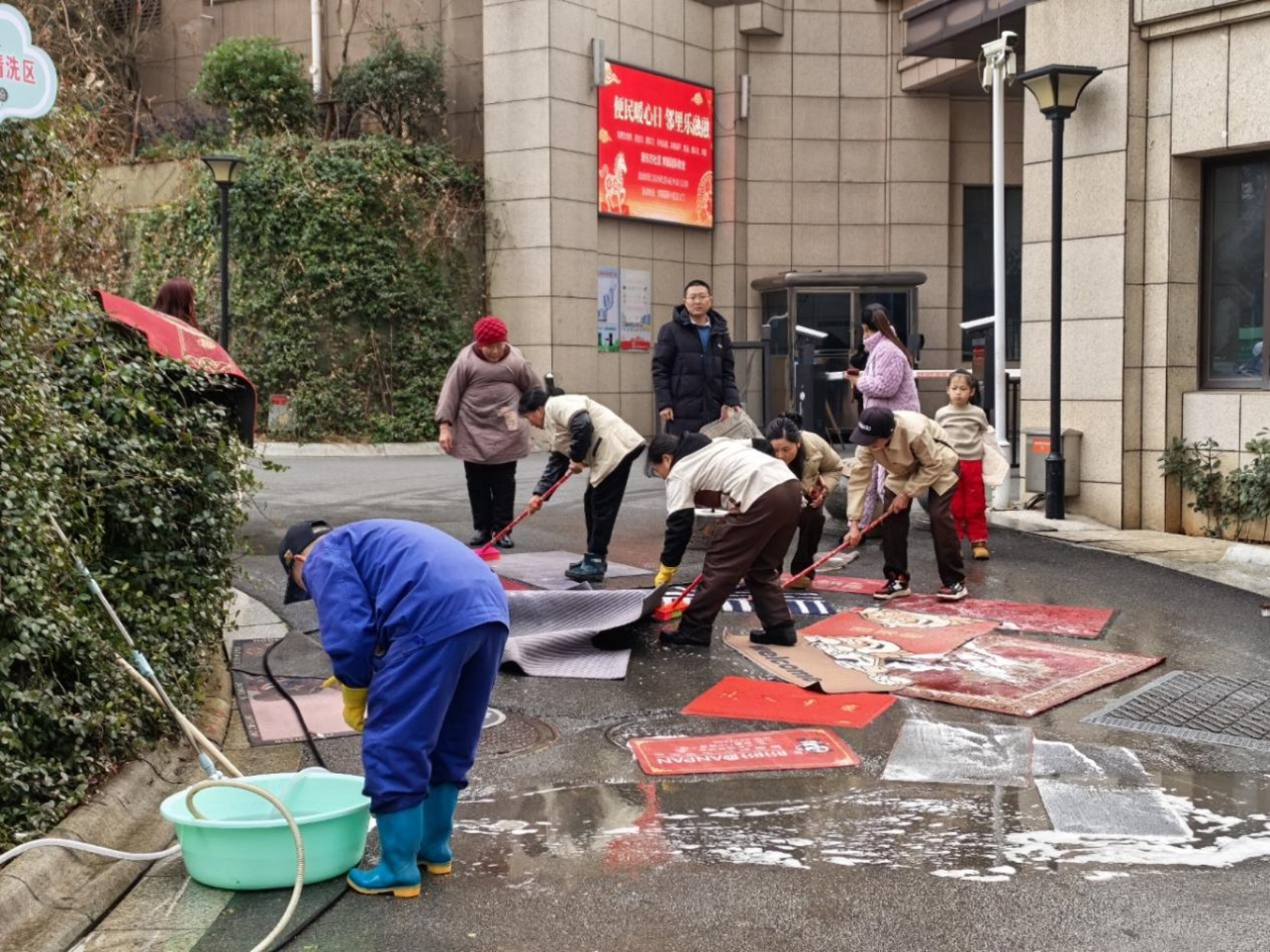 免费洗地毯点区社区、物业及志愿者分工协作,接地毯、冲污渍、擦边角、摆晾晒,每一步都细致入微。原本陈旧的地毯经高压水枪冲洗后焕然一新,居民张阿姨连连道谢:“家里大地毯难清洗,这个活动太贴心,省时又省力!”