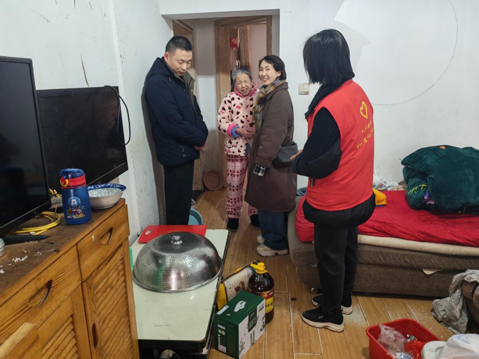 走访的第一户,是74岁的应爷爷家。老人因脑梗瘫痪在床多年,妻子常年贴身照料,两人仅靠微薄的退休金维持生活。区委社工部领导俯身在床前,轻声询问用药情况、护理负担,临走时反复叮嘱社区工作人员:“这样的家庭,光靠逢年过节来一趟是不够的,要把日常探访排进去,把能链接的资源送进来。”