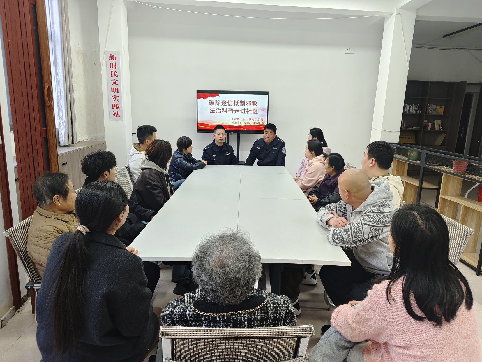 进一步弘扬科学精神,引导居民树立正确的世界观、人生观,自觉远离迷信、抵制邪教,近日,甘棠派出所民警深入社区,联合甘棠街道城南、庐峰、小南门、柴桑、南司社区开展以反对迷信、抵制邪教为主题的科普宣传讲座。