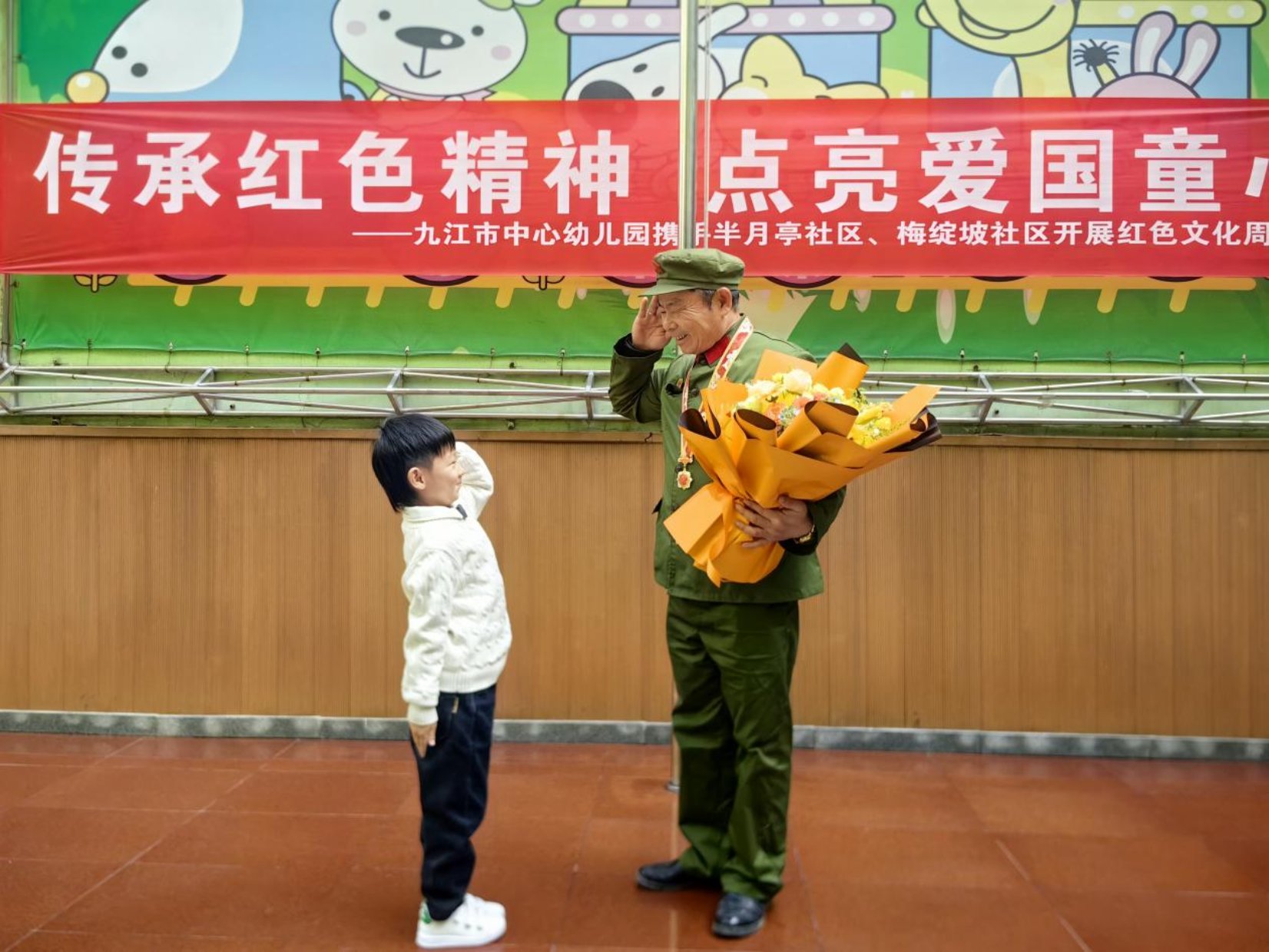 传承红色精神 点亮爱国童心—— 湓浦街道半月亭社区、梅绽坡社区联合中心幼儿园开展老兵红色宣讲活动