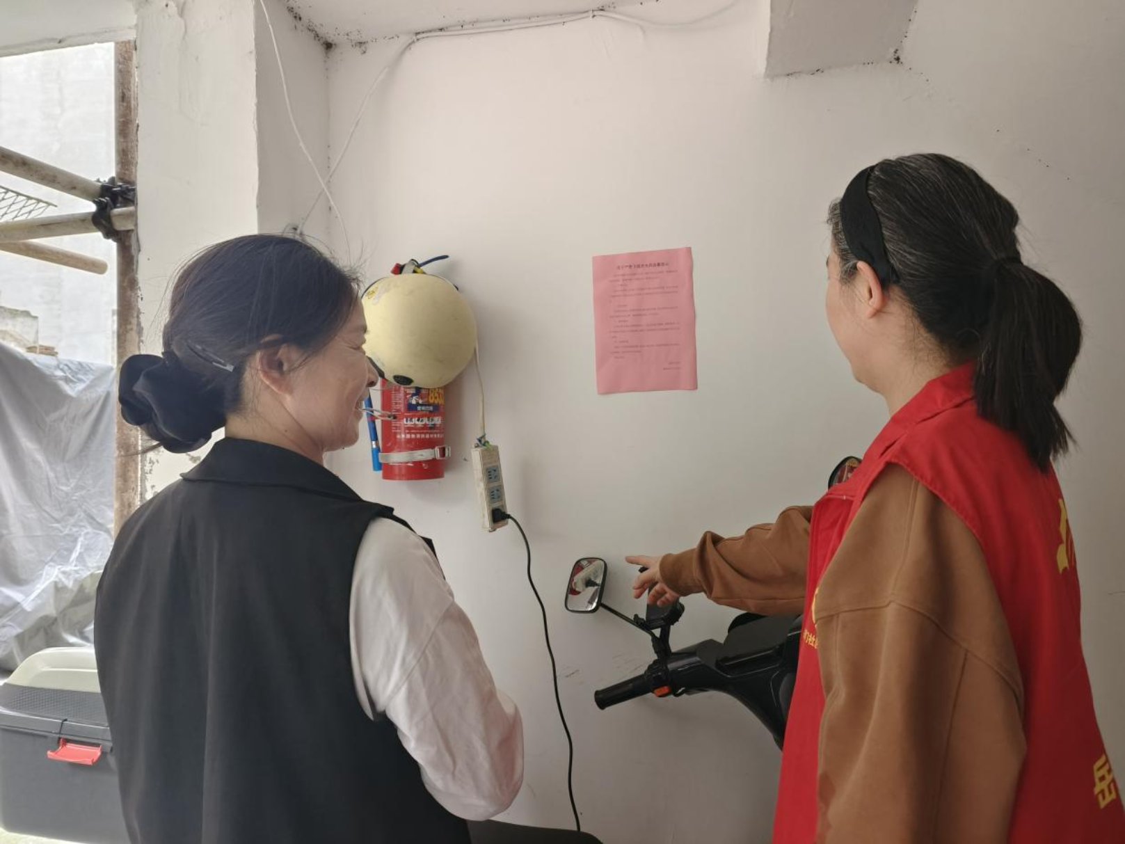 此次专项将飞线充电整治作为重中之重,全面推进隐患排查与整改落实。社区工作人员与网格员分组行动,深入辖区楼栋、院落,重点排查居民私拉乱接电线为电动车充电、楼道堆放易燃杂物等安全隐患。以“边排查、边记录、边劝导、边整改”原则,对发现的飞线充电行为,当场向居民说明其火灾、触电等安全隐患,耐心讲解违规充电的危害及相关规定,引导居民主动收回飞线、规范充电。