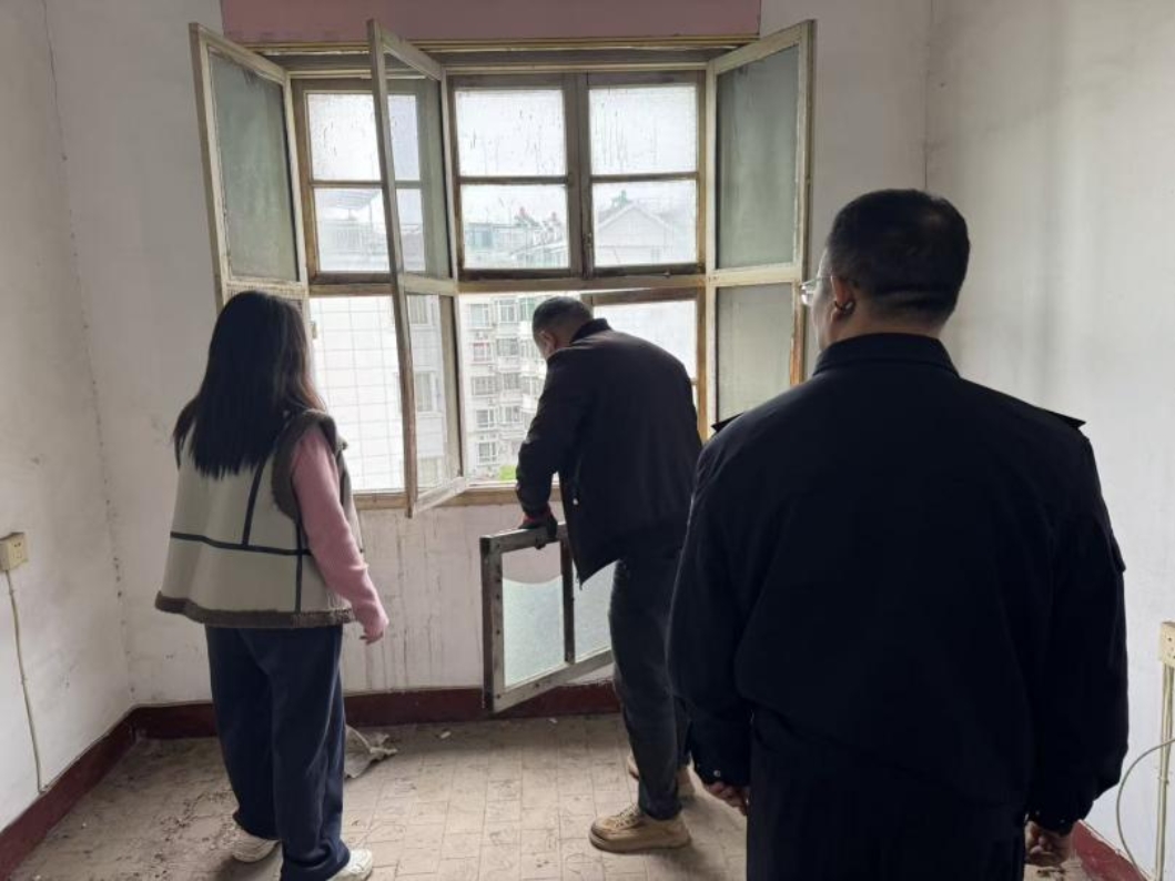 4月23日上午,社区牵头联合辖区庐南派出所民警、维修志愿者组成专项处置小组,携带安全作业工具上门处置。工作人员严格规范操作,先对脱落窗户进行临时固定,再有序开展加固作业,同时对该空置房屋全面排查安全隐患,对细微隐患当场整改,彻底消除了安全风险。