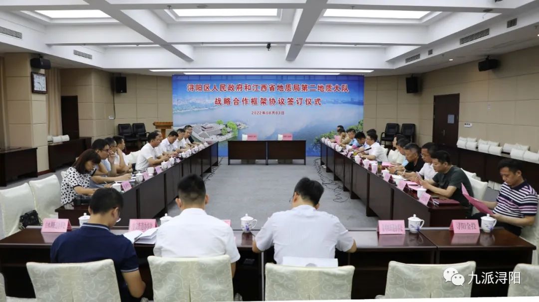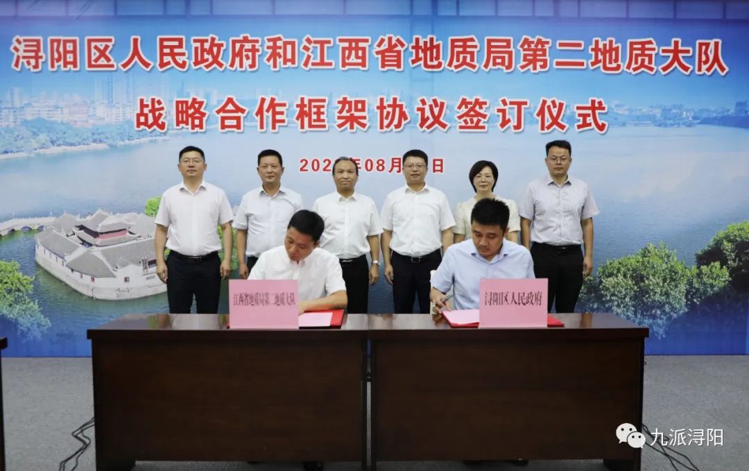 8月3日上午,浔阳区人民政府与江西省地质局第二地质大队战略合作框架协议签订仪式举行。江西省地质局第二地质大队队长罗中华,党委书记张顺,区委副书记、区长周荣卿,区领导温艳、冯文出席仪式。
