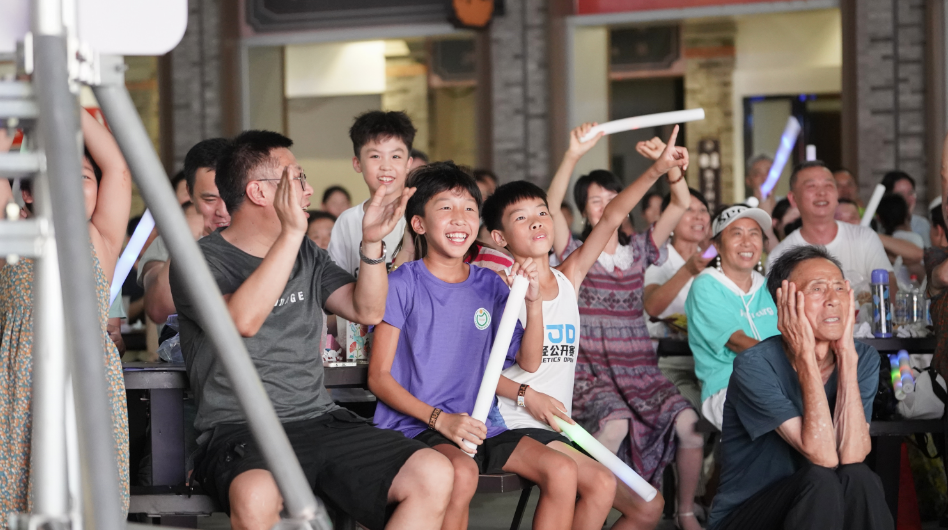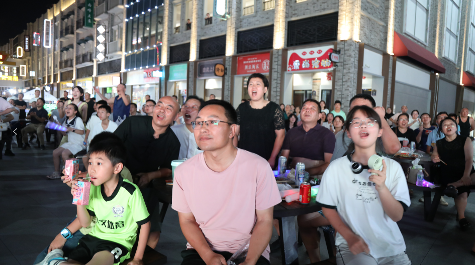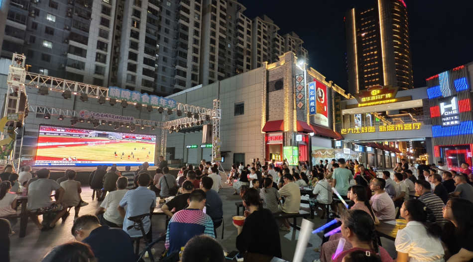 “九江、九江,威震四方。”“九江!加油!九江!加油!”助威呐喊声响彻浪井广场。裁判哨声划破夜空的瞬间,球迷们紧盯大屏幕,球员们每一个带球过人、拔脚怒射、飞身扑球的瞬间都让在场球迷心潮澎湃;角球、任意球,每一次精彩的传射都令球迷紧张。“九江队进球了!”球迷们一阵欢呼,卷起千层热浪。