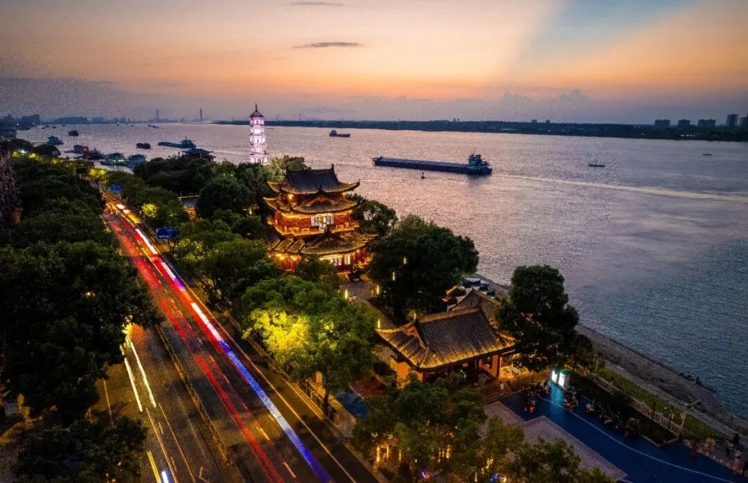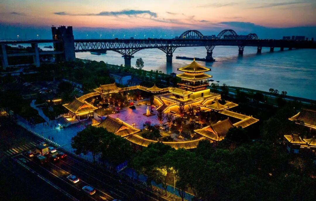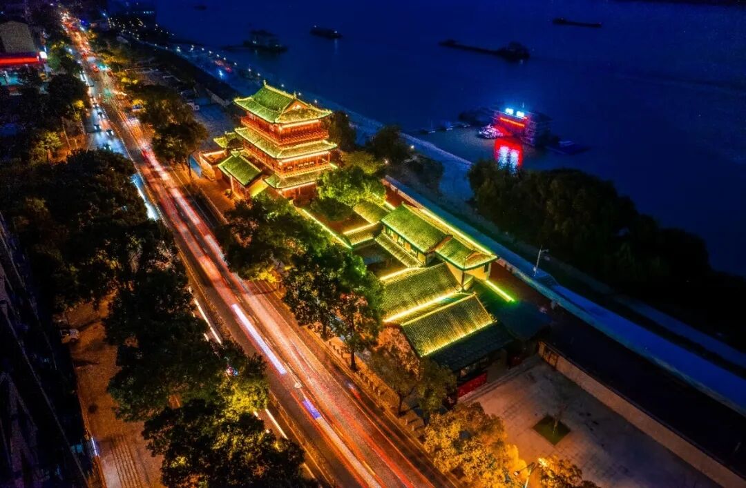 浔阳江码头-长江大桥一桥-“塔影锁江”水上灯光秀-浔阳江码头