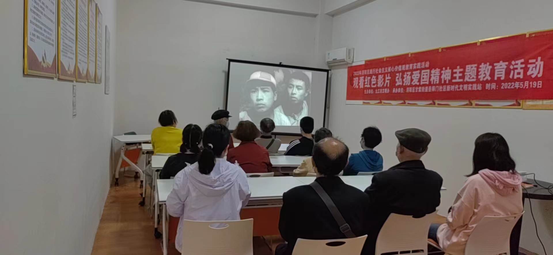 观看红色影片,弘扬爱国主义精神——甘棠街道岳师门社区党支部开展主题党日活动