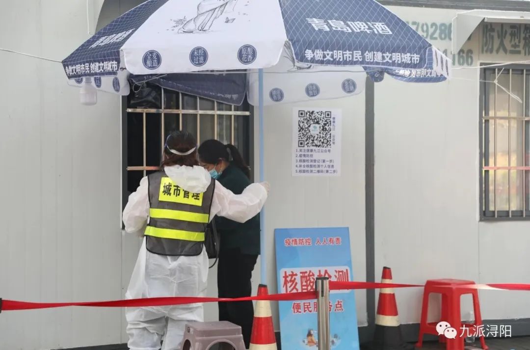 吴建新如同一个陀螺一样,一刻不停歇。刚到卡口入口看望了自己的队员,叮嘱他们在配合医护人员做好工作的同时,一定要注意自身防护,转眼的功夫便又来到检测台旁帮忙搭帐篷,“这段时间天气不太好,因为老百姓要做核酸,多搭些帐篷就能尽量避免他们淋到雨,在检测过程中手机也不会淋湿。”从场地的设施,到犄角旮旯的卫生,从对来浔人员核酸检测的管理,到工作人员扫码登记工作的落实,丝毫不敢遗漏,更不肯放过,检查完这头,他又马不停蹄地到那头去处理一些日常工作。“出现红、黄码一定要弄清楚红、黄码的原因,如果是因为核酸没做导致黄码,把他信息登记好截图,黄码原因页面也要截图,待会发到群里……所有人第一步扫场所码,第二步出示‘健康九江’,第三步做核酸,这三个流程一定要走到位。”吴建新对工作人员再三叮嘱道。
