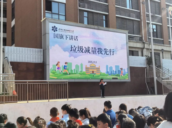 “每回收1吨废纸,能少砍17棵大树;每减少1千克垃圾,能节约0.5立方米填埋空间”。升旗仪式上,学生代表用生动的案例讲述垃圾过量带来的环境危害,一个个触目惊心的数字让孩子们深刻认识到环保的紧迫性,并向全体师生发出倡议:“不随手乱扔垃圾,做好垃圾分类;自带水杯少用一次性餐具,纸张双面使用;旧物改造变废为宝,积极参与校园回收活动”。