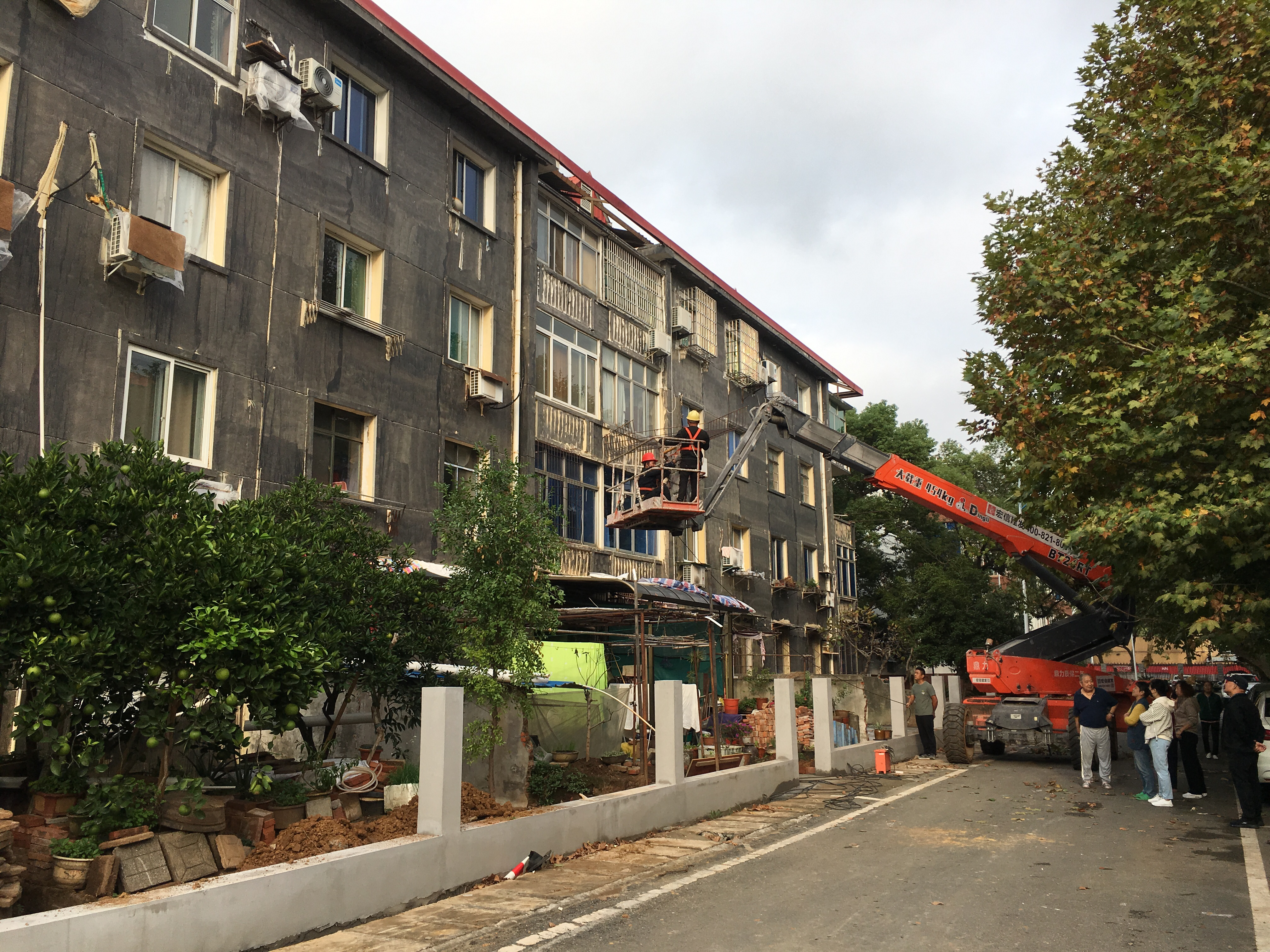 金炼完整社区改造项目位于浔阳区金鸡坡街道,东比邻九江实华学校,西靠九江石化影剧院,南邻南园公园,北接中粮粮油工业(九江)有限公司。该片区于1979-1982年建成,项目占地面积约376.8亩,改造建筑面积约14.2万平方米,共改造房屋107栋,涉及户数2570户,项目总投资约15000万元,改造主要内容包括:1.增设室外消防设施;2.增设垃圾搜集点;3.建筑立面改造;4.建筑楼梯间等公共部位改造;5.小区强弱电下地;6.增设非机动车棚;7.增加机动车车位;8.室外景观改造;9.室外路灯等部分亮化改造;10.小区内部道路改造;11.小区安防系统改造,12.强弱电下地,13.新建完整社区配套建筑。其中:新建建筑总面积1.2万平方米,改造道路面积约5.1万平方米,改造场地面积2.5万平方米,改造绿地面积6.9万平方米。增加非机动车位3298个,改造机动车车位1084个。项目于6月28日开工,8月份完成外立面改造,9月份完成新建围墙改造,11月份完成计划天沟造型,11月份海绵城市开始施工,预计竣工日期12月31日。