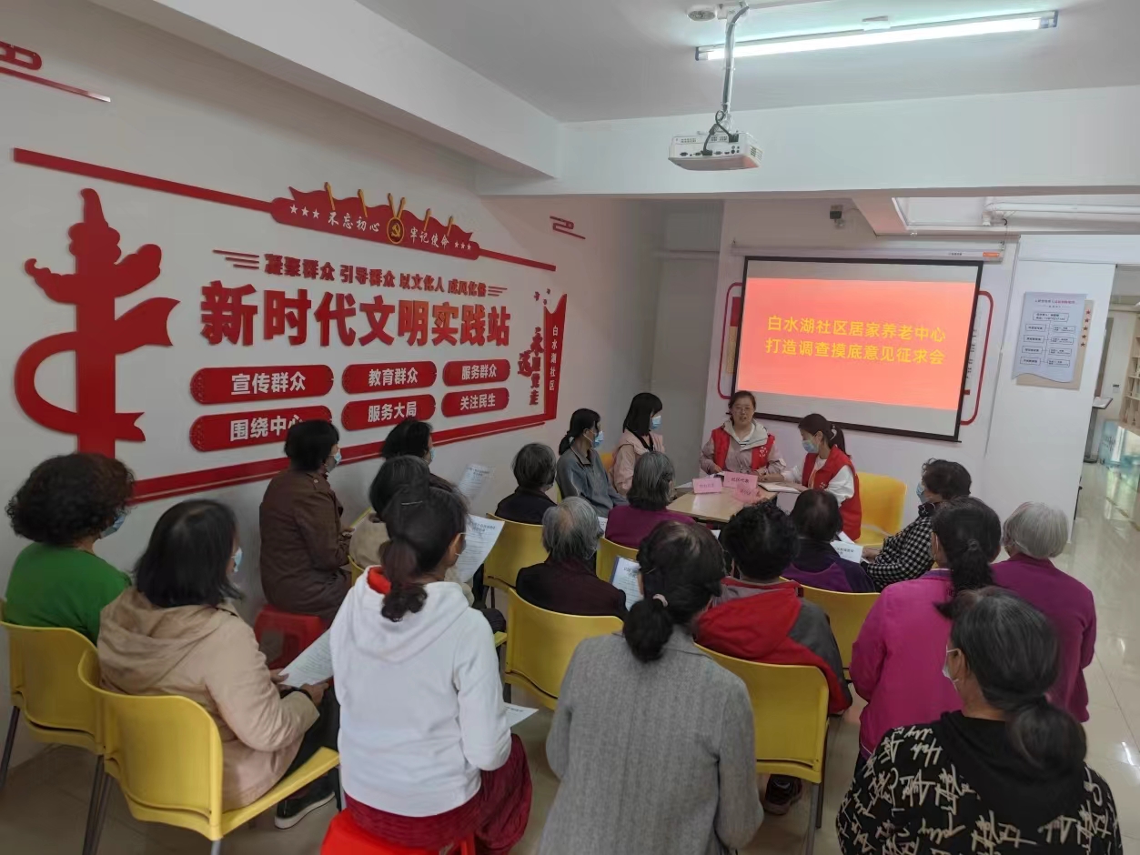 白水湖街道白水湖社区于2007年成立,白水湖社区新社区位于新庐峰东路3号新旅明樾府2栋1楼,建筑面积为231.55㎡。现辖区范围,东至长虹北路,西至柘林生活区,南至长虹北支路1号,北至滨江路977号。面积17800m2,社区现有四个居民小区,分别为啤酒厂北生活区、长盛锦江小区、公园一号小区、啤酒厂南生活区、新旅明樾府,辖区住户2066户,居民人数3200余人,为了更好地为居民服务,完善社区基础设施,满足居民日益增长的服务需求,社区配备了便民服务中心、大讲堂、文体活动室、阅览室、退役军人服务站、党员活动中心、未成年人活动室、为老厨房,为老服务活动室等。