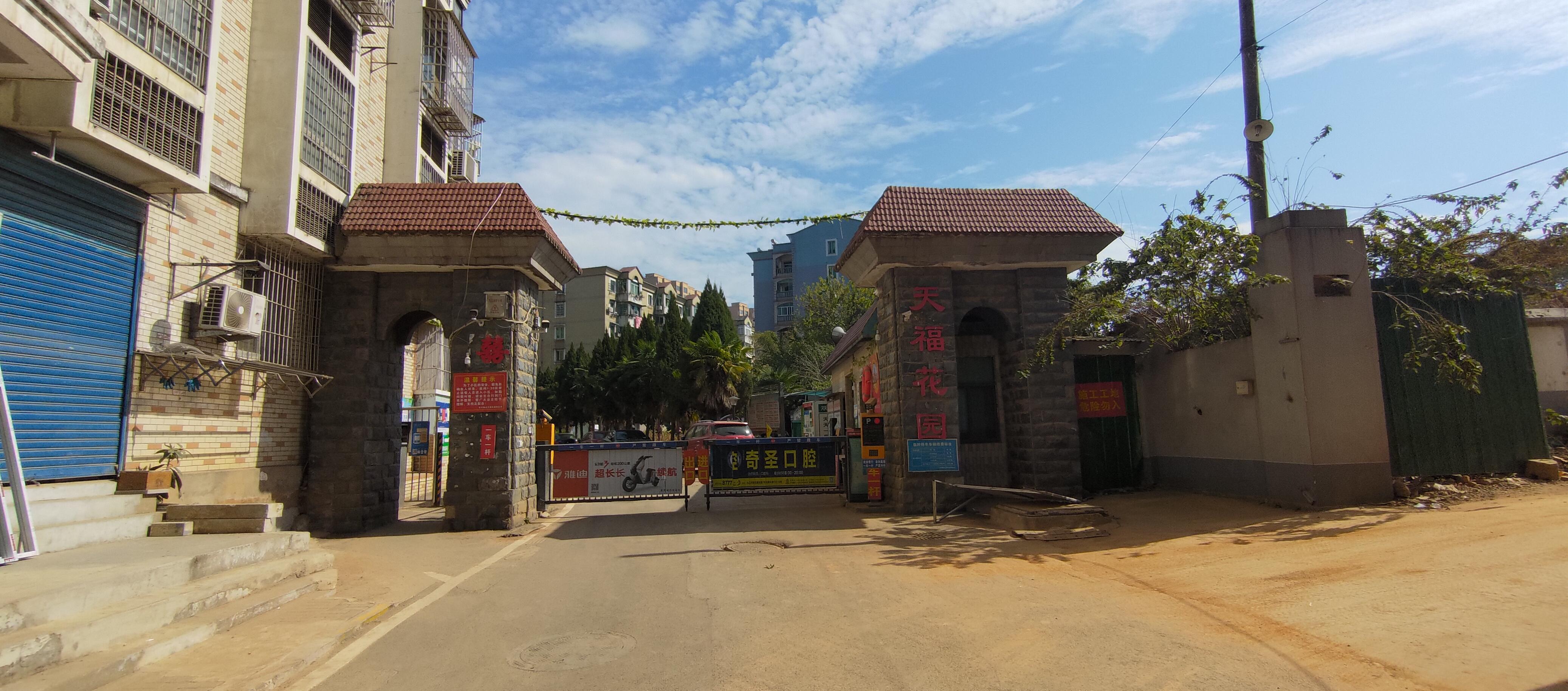 天福花园片区老旧小区改造项目提升类改造包括:充分利用小区场地搭建小区健身活动场所,拆除原天福花园大门,重新打造现代大门。
