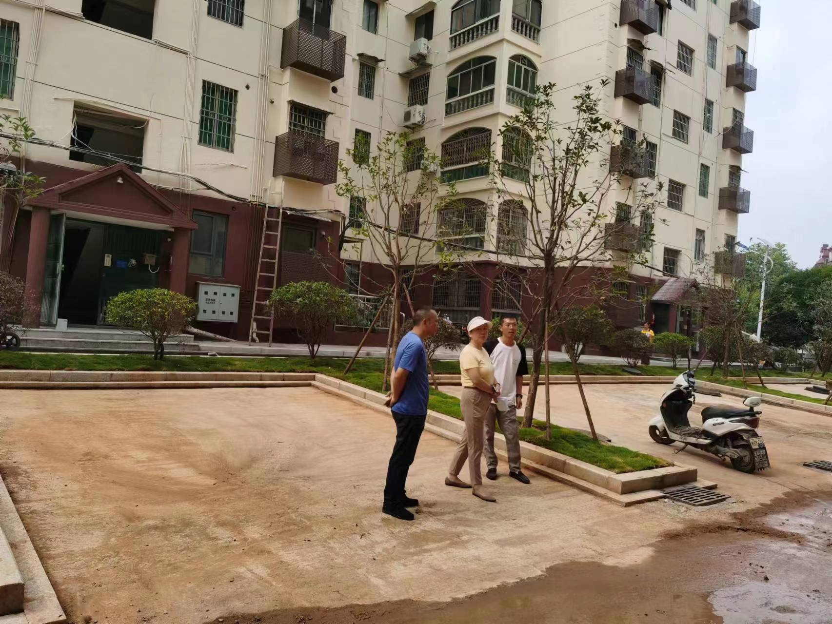浔阳区人大常委会党组书记、主任徐礼文在天福花园片区老旧小区改造现场调研,了解现场情况。