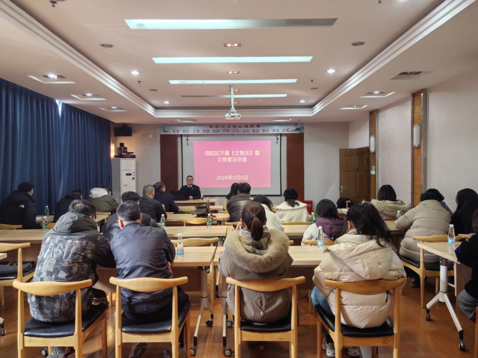 (魏玮)2025年3月6日 为深入贯彻新修订的《中华人民共和国文物保护法》,提升浔阳区文保领域法律意识和履职能力,3月6日上午,浔阳区文物局联合浔阳区法院,在区图书馆多功能室举办了一场文物普法专题讲座。全区各文保管理单位的负责人、各街道负责文物工作的同志、文物所在社区的负责人以及文物局相关股室人员共50余人参加了此次活动。