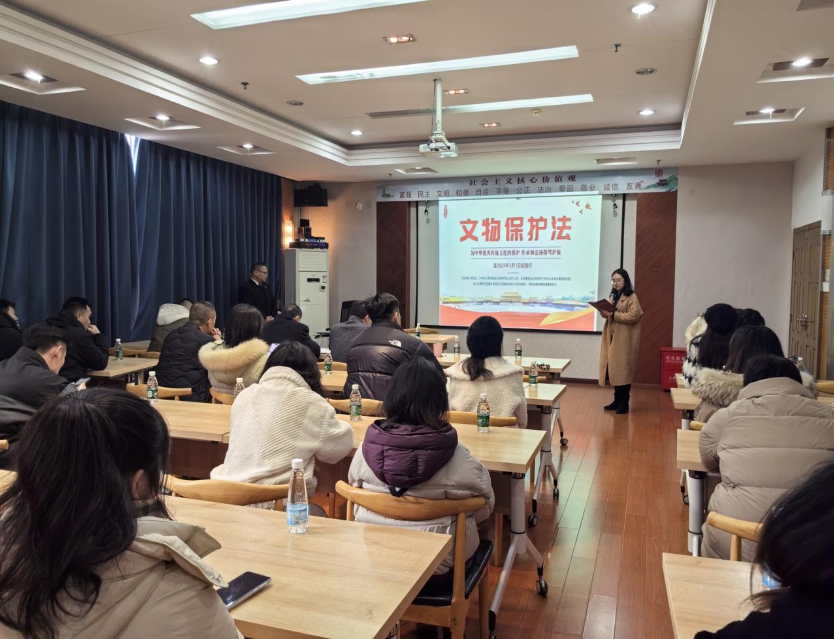 此次讲座,特邀了浔阳区人民法院东郊法庭庭长、一级法官蔡振霄进行授课。讲座以“新《文物保护法》内容及亮点解读”为主题,围绕新修订的《文物保护法》核心条款展开,重点阐释了新增内容、修订背景、文物概念、保护措施、法律责任、相关影响等,通过对比新旧法的差异,宣传了现行法律对文物传承保护的重要作用。
