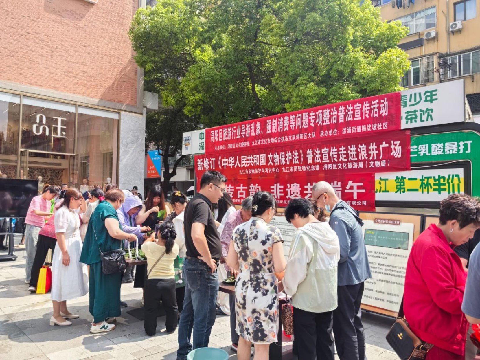 工作人员通过现场讲解,从文物的定义、分类,到不可移动文物和可移动文物的保护措施,再到文物的合理利用与传承发展,让市民们对文物保护有了更为直观和全面的认识。特别是对于新修订《中华人民共和国文物保护法》中新增的“先调查、后建设”“先考古、后出让”制度,以及加强未定级不可移动文物保护、明确流失文物追索返还工作机制等内容,进行了重点阐释,引发了市民们的浓厚兴趣和热烈讨论。此外,活动现场还结合了端午节点,给市民提供了艾叶、糯米等包粽子和制香囊活动,让市民感受传统文化魅力,传递节日祝福。