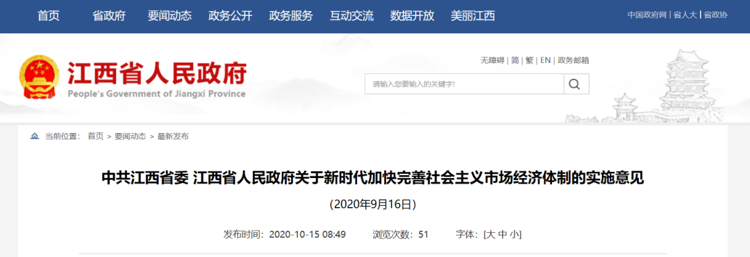 如何推进经济体制改革?江西出台32条实施意见 其中有关于市场准入的重要消息